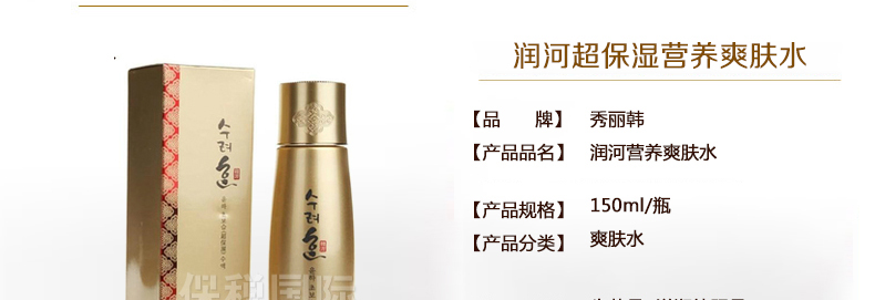 秀麗韓 潤(rùn)河超保濕營(yíng)養(yǎng)爽膚水 中藥滋養(yǎng) 調(diào)節(jié)陰陽(yáng) 150ml/瓶 |