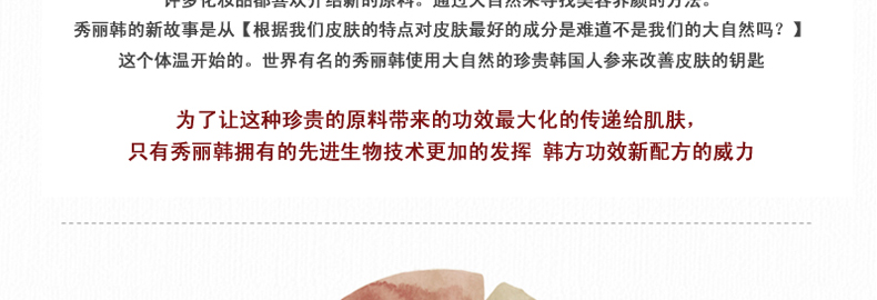 秀麗韓 潤(rùn)河超保濕營(yíng)養(yǎng)爽膚水 中藥滋養(yǎng) 調(diào)節(jié)陰陽(yáng) 150ml/瓶—— 1.生芽丹包含了植物中最豐富的營(yíng)養(yǎng),并且具備保鮮功效,有效預(yù)防肌膚老化,使肌膚煥發(fā)活力朝氣。 2.由7種中藥成分構(gòu)成的滋潤(rùn)補(bǔ)陰丹對(duì)于干燥皮膚有滋潤(rùn)補(bǔ)陰的作用,更能從皮膚深層補(bǔ)充水分,使皮膚水潤(rùn)有光澤。 注:敏感肌膚慎用,可隱蔽處進(jìn)行皮膚測(cè)試后使用。 |