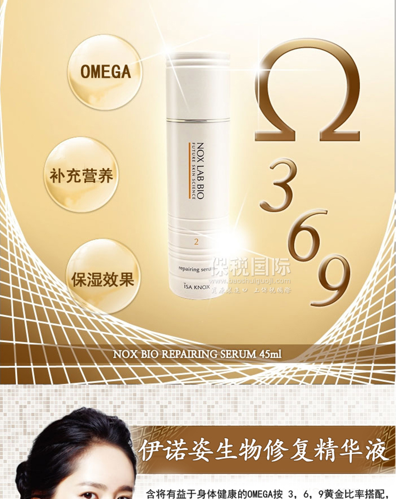伊諾姿】生物修復精華液 特含OMEGA和神經酰胺成分—— 適當維持肌膚油水份平衡,形成肌膚營養膜,為干燥的肌膚集中補充營養的營養精華。 |
