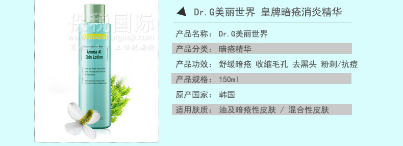 | 產品說明 | DR.G 美麗世界 TROUBLE CARE A1皇牌暗瘡消炎精華 改善暗瘡膚質 (150ml)—— 1.能迅即鎮靜及舒緩肌膚,抑制引起暗瘡的細菌,并阻礙細菌蔓延。 2.可產生即時消炎的作用,減少皮膚出現紅腫的情況。 | |||