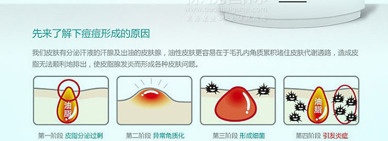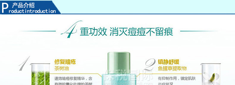 | 產 地 | 韓國 | 成 分 | 荼樹油: 消炎抗菌、平衡油脂分泌 三氨生: 剎菌,能防止暗瘡形成 水楊酸: 軟化角質,溶解黑頭粉刺,暢通毛孔,收乾暗瘡 | |