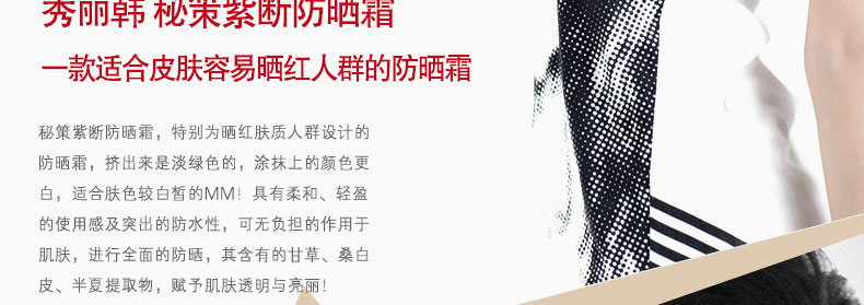 ![]() | 商品名稱 | 韓國 秀麗韓 秘策紫斷防曬霜 適合皮膚容易曬紅的人群(60ml/支) | ||