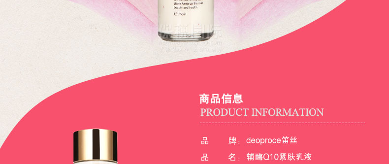 韓國 笛絲DEOPROCE 輔酶Q10緊膚乳液 恢復肌膚彈性 緊致肌膚(150ml/瓶)—— 1.深入滲透至肌膚深層,補充肌膚營養(yǎng),保濕滋養(yǎng)緊致肌膚,使肌膚充分鎖水,使肌膚煥然一新。 2.輔酶R作用于肌膚表層,有效促進肌膚的自我更新,由外而內鞏固肌膚的天然構造,平滑肌膚細紋,使肌膚更緊致光滑。 使用方法:使用本品的柔膚水之后,取少量輕拍于臉部與頸部。 |