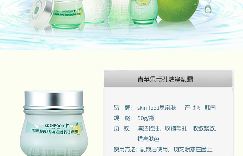 ![]() | 商品名稱 | SKIN FOOD思親膚 青蘋果清爽緊膚乳霜 收縮毛孔 緊致皮膚 50g/瓶 | ||