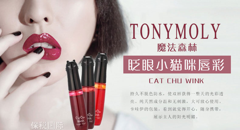 ![]() | 商品名稱 | Tonymoly魔法森林cat chu wink眨眼小貓咪 持久不脫色防水 唇彩 1#櫻桃色 2#蘋果色 3#橙色 | ||
