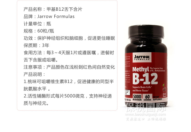 ![]() | 商品名稱 | Jarrow Formulas賈羅營養品 甲基B12櫻桃味舌下含片? 60粒/瓶 | ||