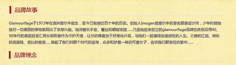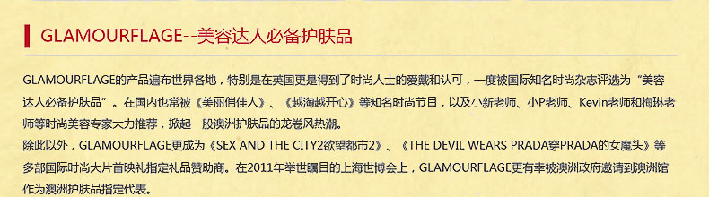 - 品牌:澳大利亞 Glamourflage/格蘭瑪弗蘭
