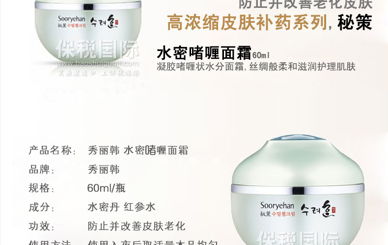 秀麗韓 高濃縮皮膚補(bǔ)藥系列 水密啫喱面霜 絲綢般柔和護(hù)理肌膚60ml/瓶 |