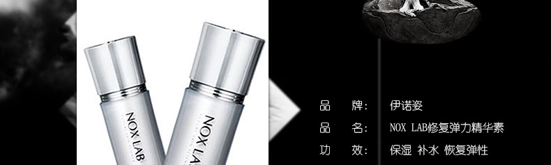 | 產品說明 | 伊諾姿NOX LAB雷婷修復彈力精華素 45ml/瓶—— 1.改善皺紋,讓肌膚水潤有彈性。 2.對干燥、粗糙、老化的肌膚一次性轉換并補充所需的營養成分。 3.使用時出現過敏癥狀(紅腫、瘙癢等)請停止使用,不要涂抹在傷口、濕疹處,避免直線光照射,請保管在兒童觸摸不到的地方。 | |||