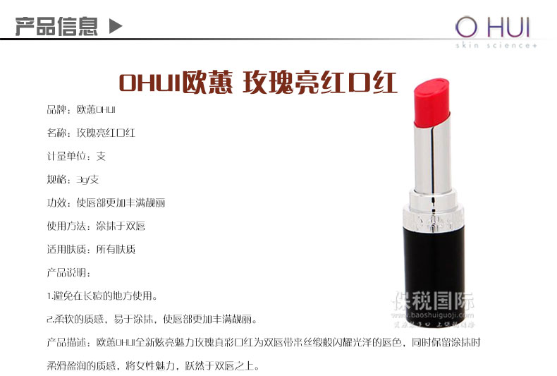 | 品 牌 | ? ? 歐蕙/OHUI | 規 格 | 3g/支 | |