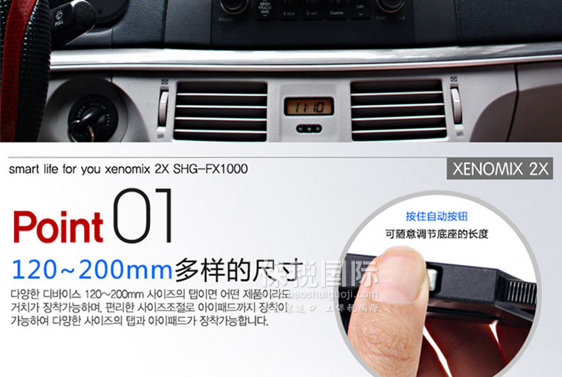 韓國STATUS Dash board多功能支架—— 附著型車載智能支架,可調整舒適的角度,適用于所有車輛,裝卸簡單。采用國內先進技術生產開發的車載支架名品,流線形設計,可調節角度和高度。不用脫掉手機保護殼也可以方便安裝適用于120~200mm多樣的尺寸,按住自動按鈕可隨意調節底座的長度。 |