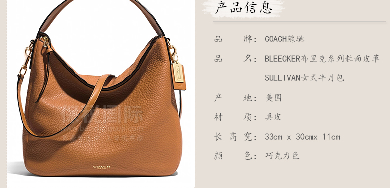 ![]() | 商品名稱 | 美國蔻馳 BLEECKER布里克系列 粒面皮革SULLIVAN女式半月包 真皮斜挎手提包 巧克力色 31623 | ||